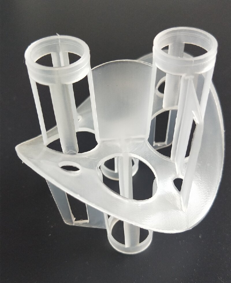 Plastic random packing is made from heat resistant and chemical corrosion resistant plastics, including polyethylene (PE), polypropylene (PP), reinforced polypropylene (RPP), polyvinyl chloride (PVC), chloridized polyvinyl chloride (CPVC) and polyvinylidene fluoride (PVDF). It has features such as high free volume, low pressure drop, low mass-transfer unit height, high flooding point, uniform gas-liquid contact, small specific gravity, high mass transfer efficiency and so on, and the application temperature in media ranges from 60to 150. For these reasons it is widely used in the packing towers in petroleum industry, chemical industry, alkali-Chloride industry, coal gas industry and environmental protection, etc..